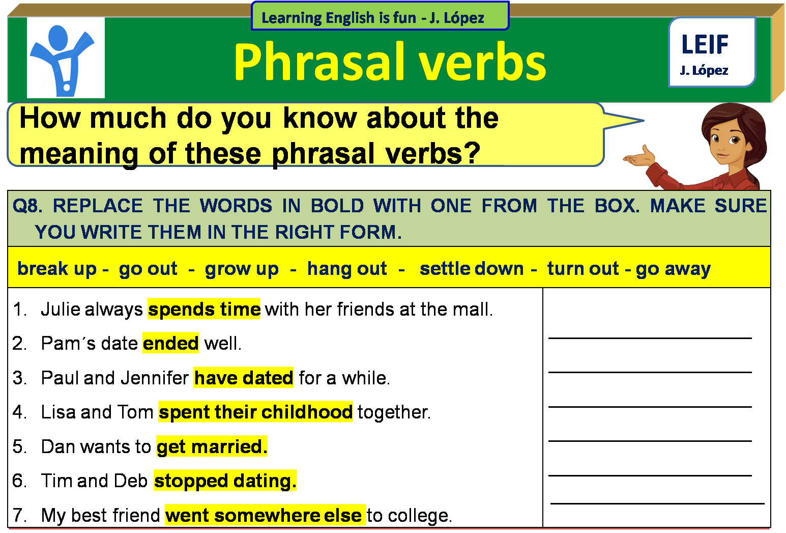 As well as learning their meanings, you need to learn how to use phrasal verbs.